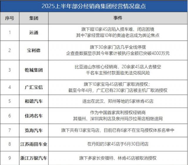 广汇汽车在 2025 年 5 至 7 月新增 287 家退网门店,占年初网点总数的近 4 成;梅赛德斯 - 奔驰计划自 2025 年起削减超过 100 家门店,优化低效网点并提升整体运营效率;保时捷计划到 2027 年将中国经销商数量压缩至约 100 家。