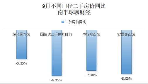 从70城来看,9月(加权后)整体同比下跌5.25%,与其他口径放在一起——