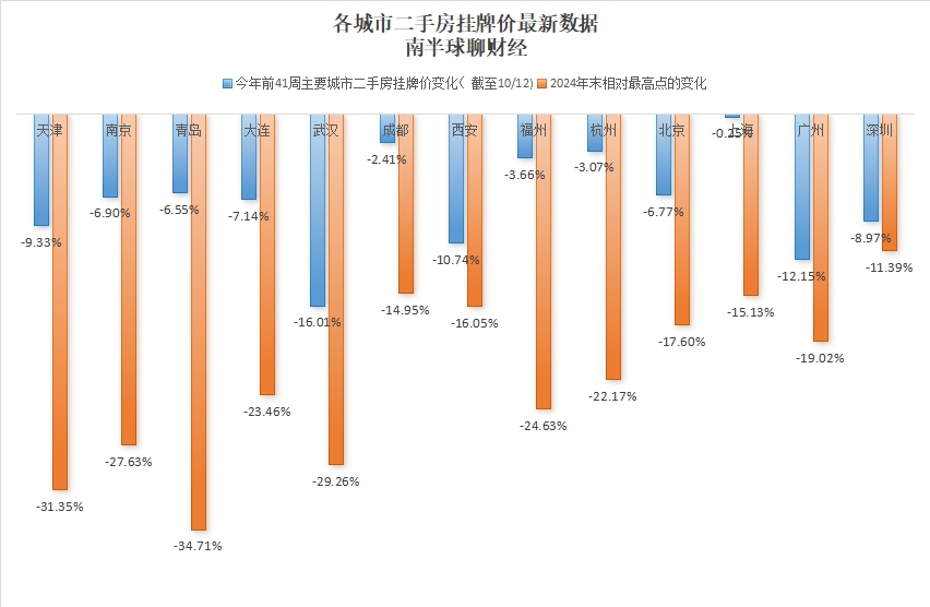 看得出,涵盖的城市样本越多,同比下跌幅度越凶。